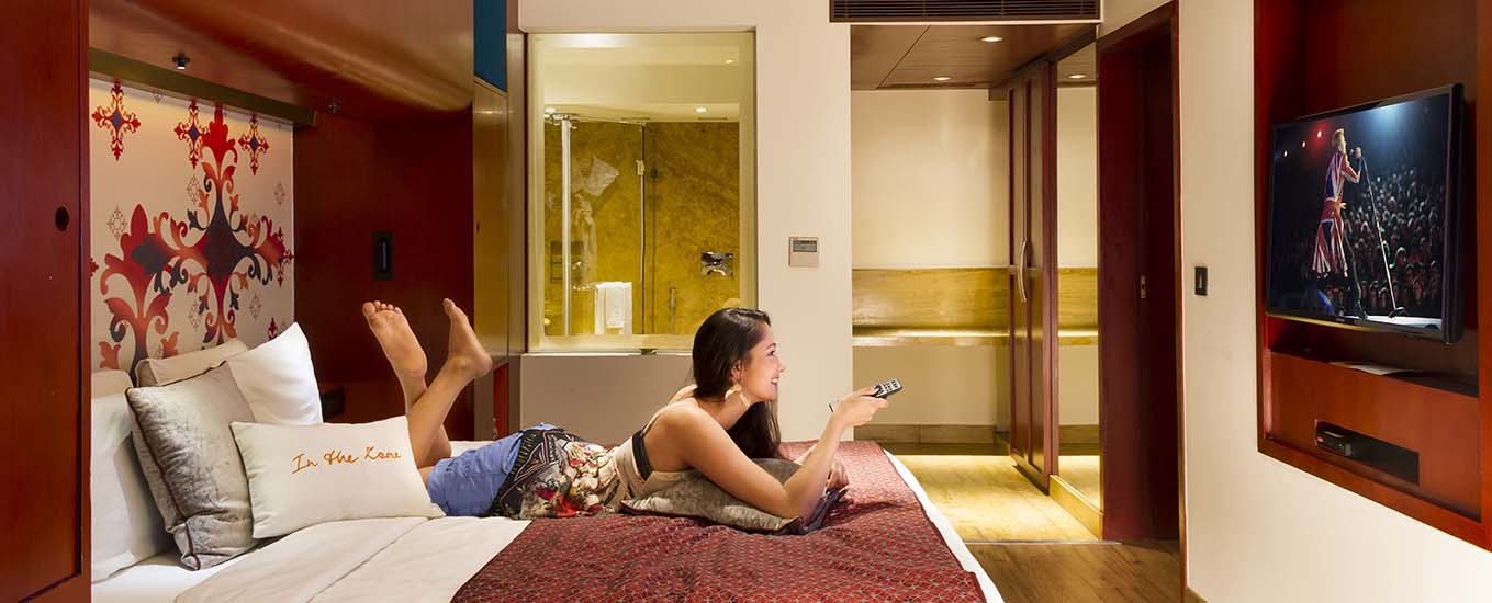 Your room at Zone by The Park is controlled by smart technology which sets it to your preferences whether it's the temperature or television channels. Regulars can also save these for future visits across any zone hotel in other locations. Area: 260 sq. ft.